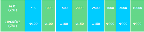 不銹鋼桶式過濾機(jī)(器)規(guī)格和容量數(shù)據(jù):